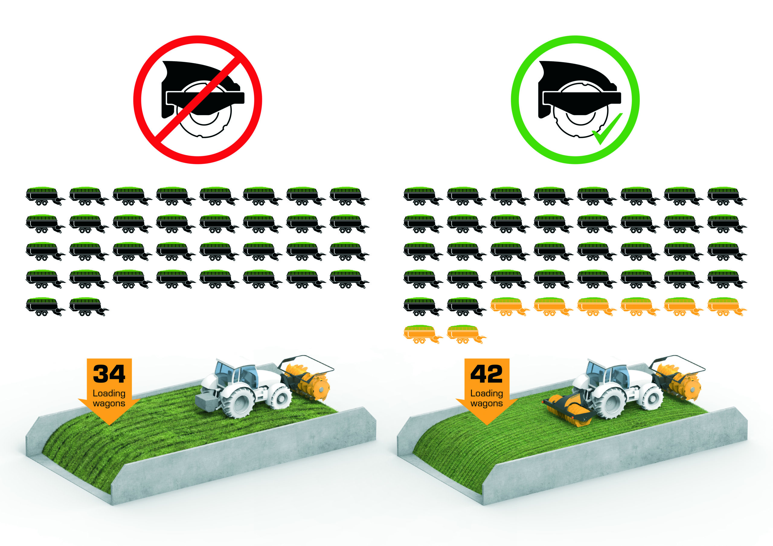 - 200 mm kõrgused kettad annavad optimaalse punktkoormuse ning tagavad ühtlase tihenduse kuni jaotatud söödamassi kihi põhjani.
